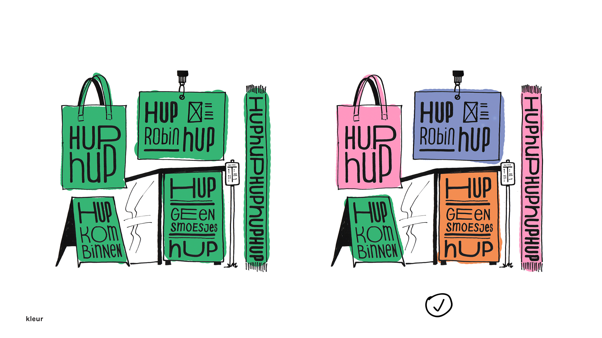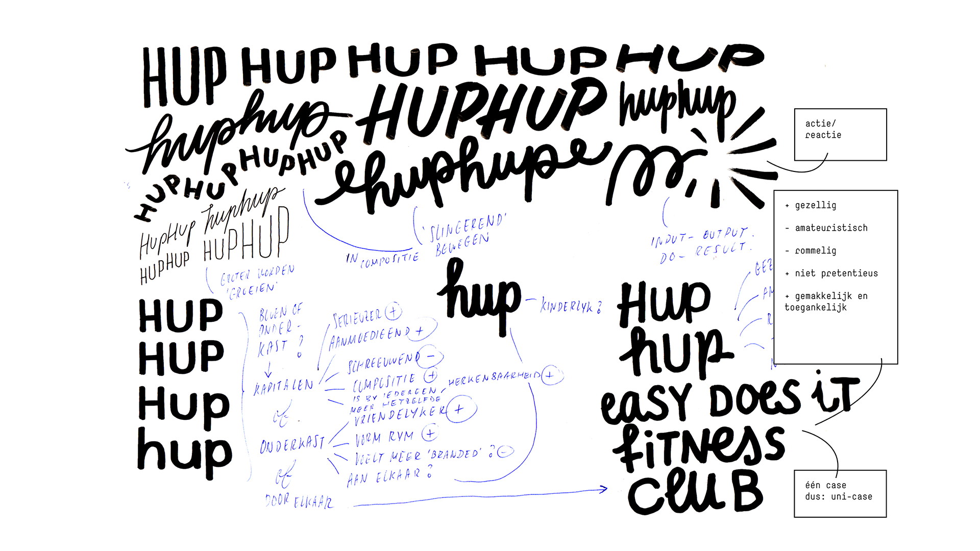Samen met grafisch ontwerper en typograaf Guido de Boer ontwikkelde ik een setje letters die, net als huphups clubleden, door dik en dun van groot naar sterk gaan.